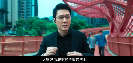 电影中最有挑战性,也是最有意思的角色要数那位财经网红主播韩博士,韩东川。一方面,他挑起了一桩又一桩金融骗局,组织策划了一起又一起荐股杀猪盘,毫不留情地割散户的韭菜,就是一位道貌岸然下的伪君子。