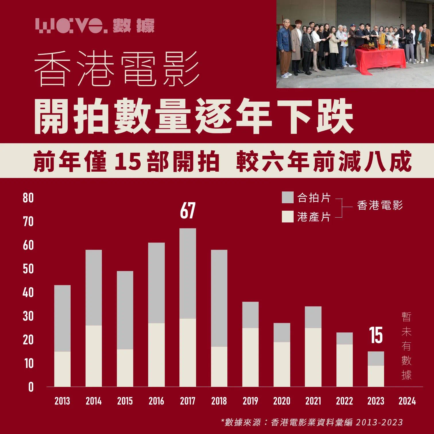 据港媒统计,香港电影,无论是纯港产片还是合拍片产量都在减少。近期,古天乐也表示,这两年(香港电影市场)其实不宜大投资,但小投资又会扼杀了一些出色的制作,最好能采取中庸之道。