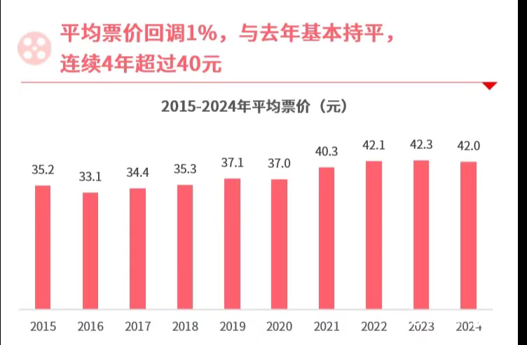 另据猫眼研究院发布的《2024中国电影市场数据洞察》显示,电影平均票价连续4年超过40元。据悉,早在2018年初,主管部门就已叫停低价票补,划定了19.9元的最低限价。自2022年以来,电影平均票价稳定在42元的高位。当下,有了各主管部门下发的相关扶持以及各观影平台发布的消费补贴,低票价势必会让更多观众选择重新走进影院。