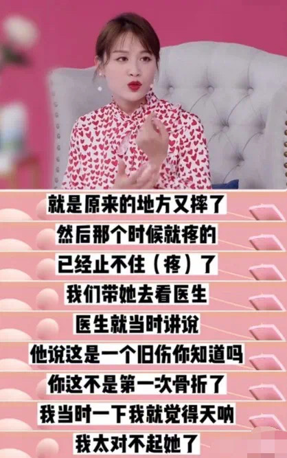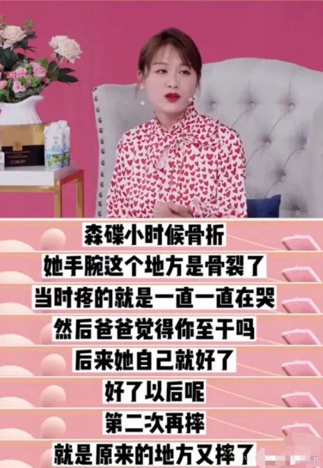 叶一茜曾在节目说对女儿觉得愧疚,森碟小时候骨裂,手腕疼,爸爸觉得不至于;后来森碟第二次再摔,医生发现这是个旧伤,叶一茜当时觉得特别对不起女儿。