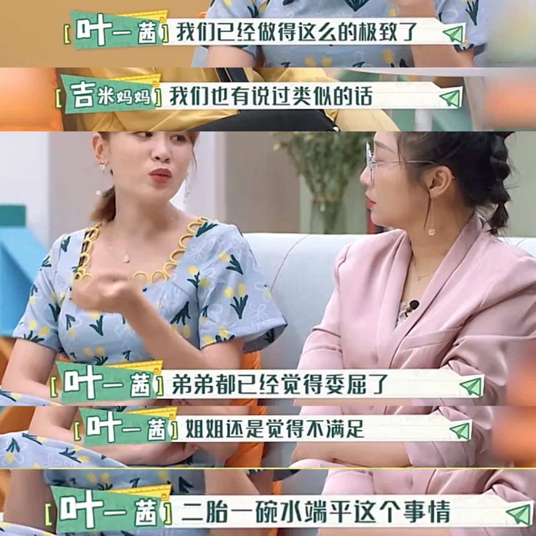 叶一茜谈过二胎家庭端水问题,她觉得外人看来她和田亮已经做的很好,但森碟还是觉得没有弟弟就好了,爸爸妈妈只爱她一人。